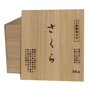 ※宮城県産大豆と沖縄の自然塩、さくら酵母など、素材にとことんこだわった特製みそです。高級感溢れる贈答用の桐箱入りとなっております。