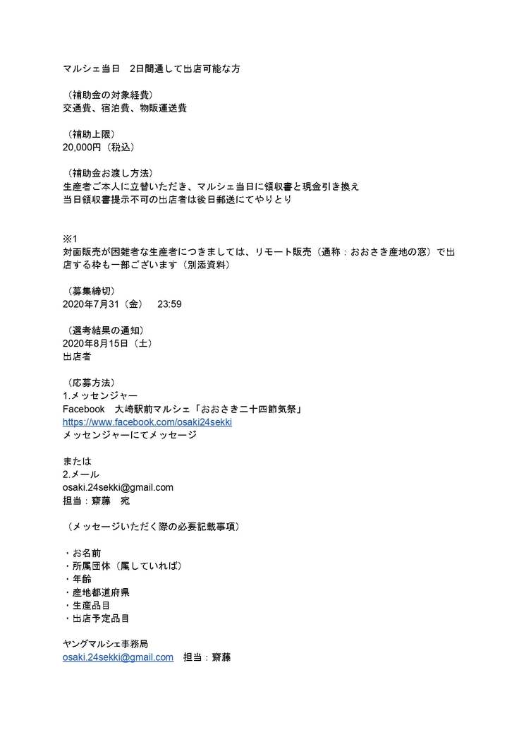 早いもので、プロジェクト達成から1ヶ月が立ちます。 近況報告をさせていただきます。 7月中旬よりヤングマルシェの出店者(生産者)を募集しています。 全国の生産者さんが出店できるよう、8月中には出店者さんが決まるよう調整していきます。 皆様のお知り合いで、ヤングマルシェ出店にご興味ありそうな生産者がいましたら、 是非下記の募集要項をご案内していただけると幸いです。 募集要項は「大崎二十四節気祭」Facebookでも先行して案内しています。 https://www.facebook.com/permalink.php?story_fbid=303299284187234&id=100035214950548 ご不明な点がございましたら、お気軽にお問い合わせください。