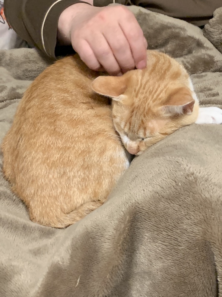 そんな中ルルは狸寝入りを覚えたようで、お薬の時間になると膝の上でお薬拒否をしています。