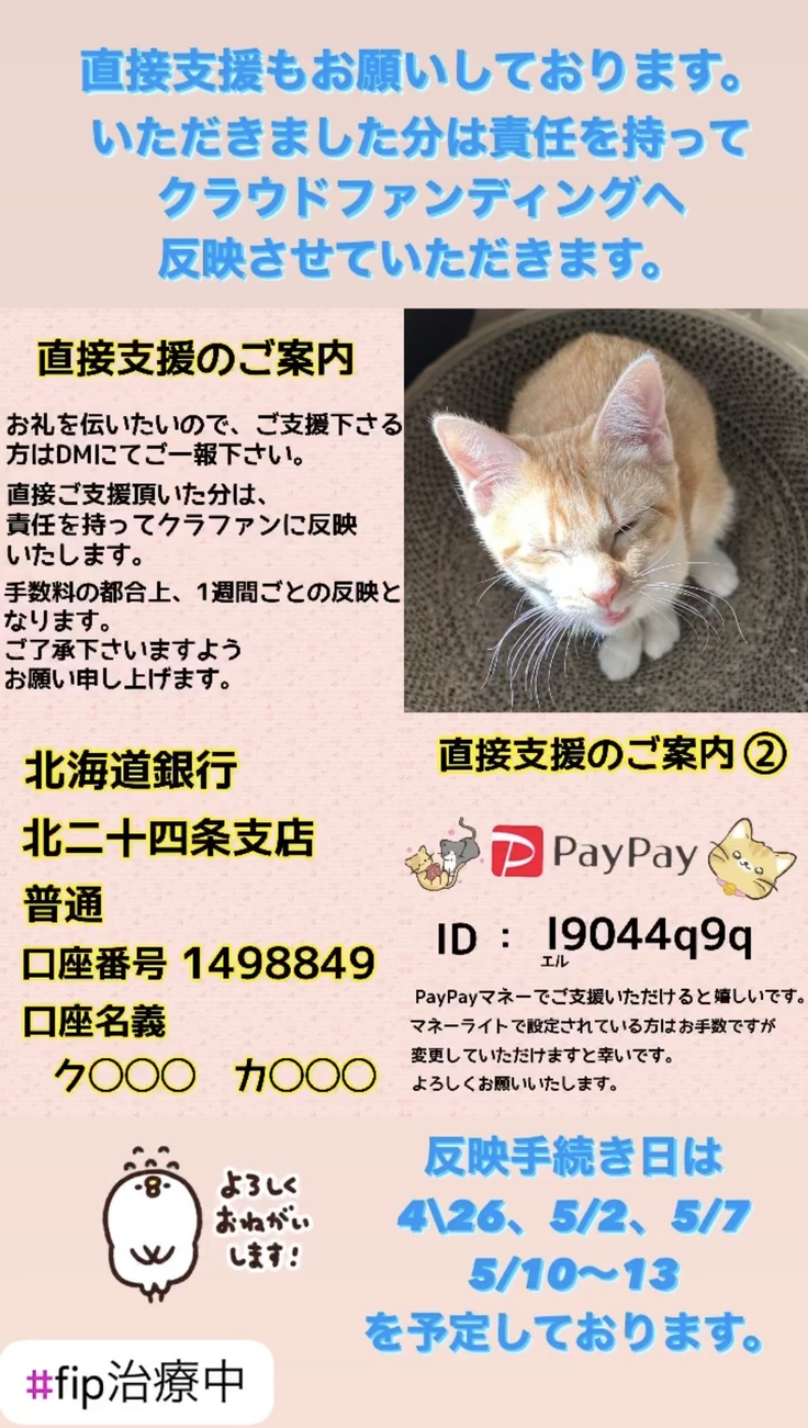 猫伝染性腹膜炎を患ったポンちゃんの明日をつないで頂けないでしょうか