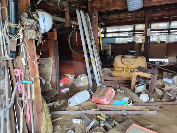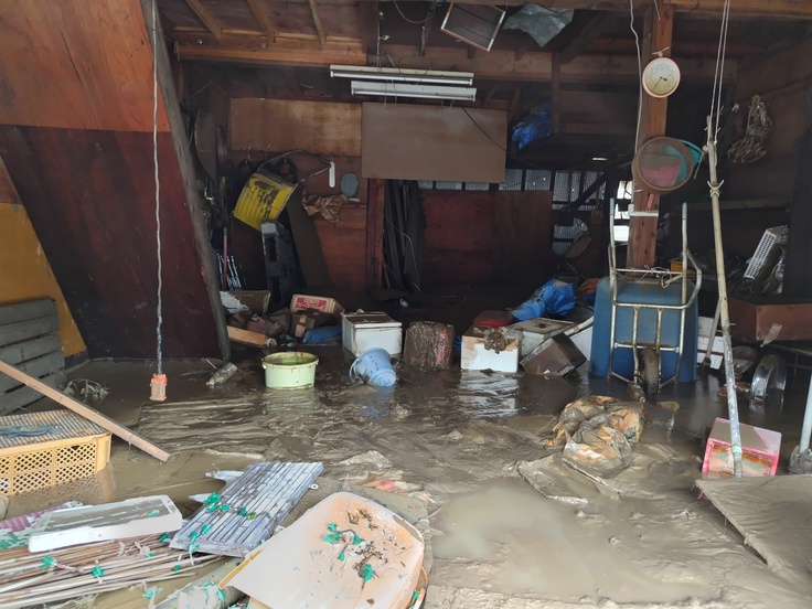 母屋の裏の小屋は、二階も全滅でした。1階は、ドロが20cm有りました。
