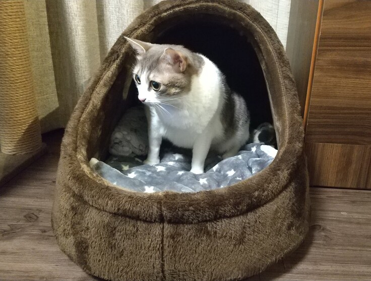 ↑半年ほど放置されていた猫ベッドに急に入るようになり、最近はここで寝ることが多くなりました。