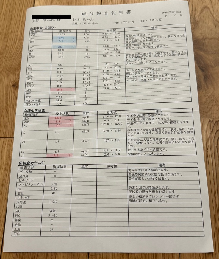 血液検査の方も他の猫ちゃんには高い数値ですが