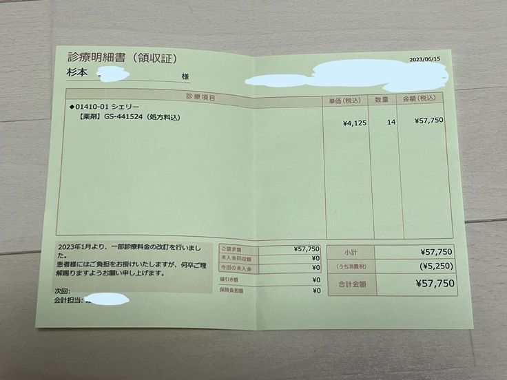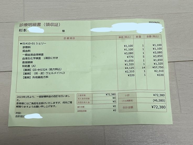 前回の治療費とお薬代、今回のお薬代で合わせて¥130130…( ; _ ; )