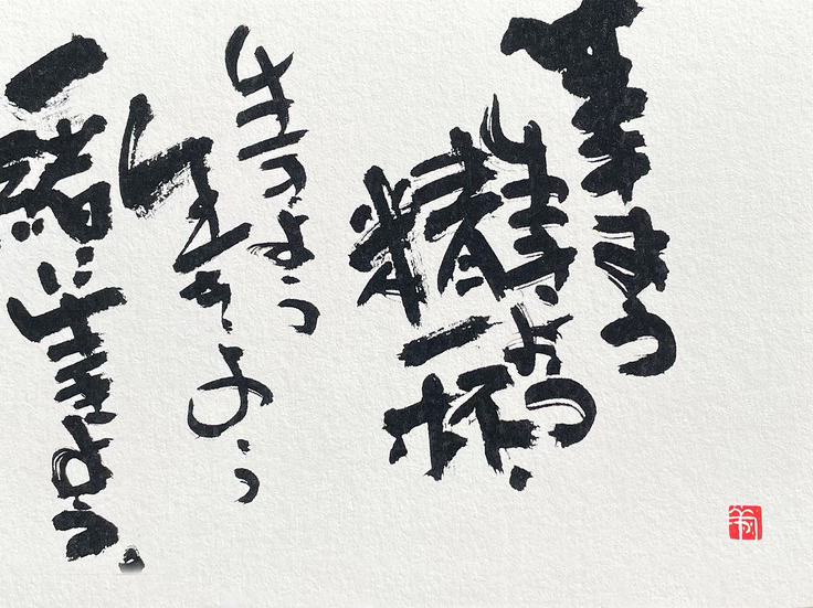 全ての作品に「生きよう。一緒に生きよう。精一杯生きよう。」というエネルギーを込め、日本の伝統文化でもある書を世界中の人に届けることを使命と考え、日々筆を取っています。