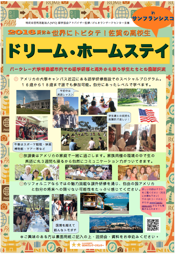 今年7月に、佐賀の子どもたちのためにアメリカでの語学研修を実施します。