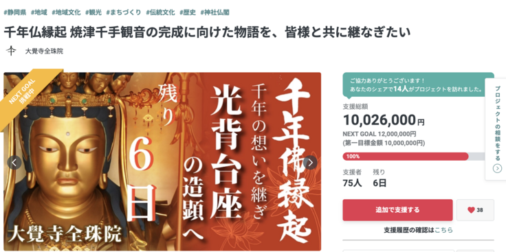 第二弾クラファン千年仏縁起 焼津千手観音の完成に向けた物語を、皆様と共に継なぎたい