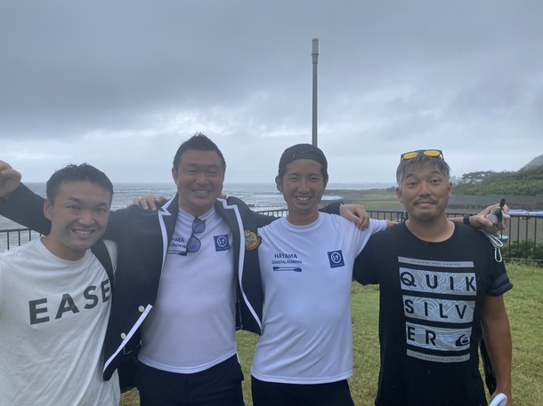 今日はビーチスプリント葉山大会2日目で、写真は主催メンバー野尻さん、井手さん、吉田さんとの記念写真です。