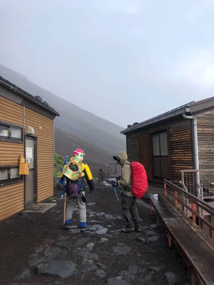 予定では夜のうちに登山を再開して、御来光を頂上で拝むはずでしたが、出発の23時の時点で、8合目の状況がかなり酷いらしく、早朝4時まで待機になりました。