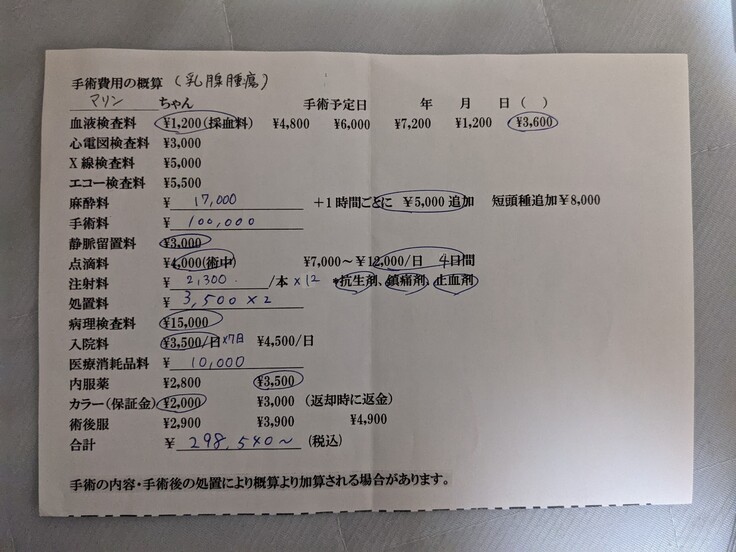 膀胱結石があるために、★急変や体調の変化などによりそれ以上に費用がかかる