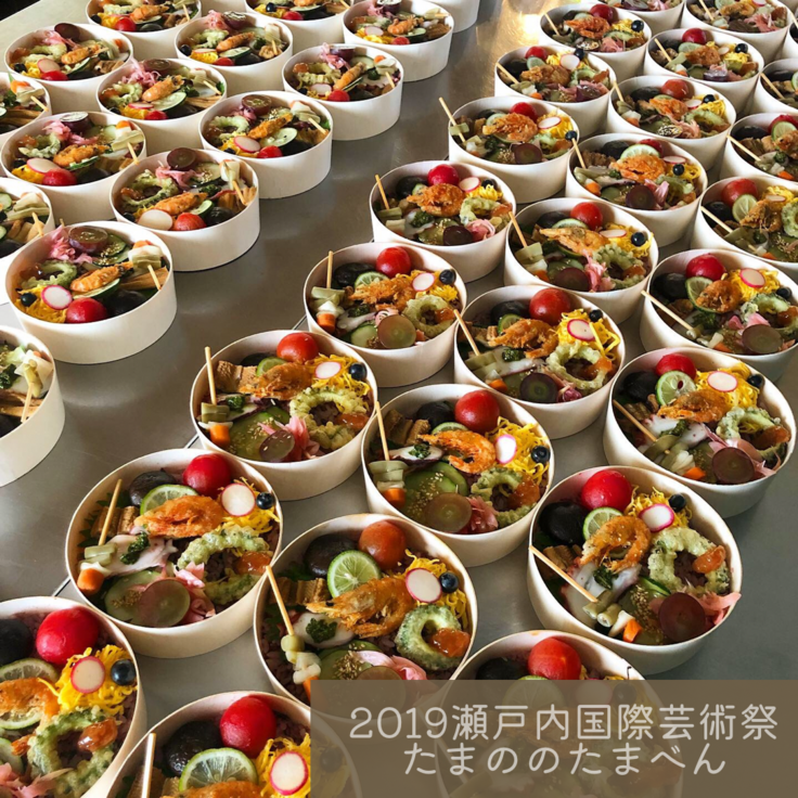 2人の息子の成長とともに活動の範囲を広め、無添加調味料の手作りワークショップを開催する他小豆島産無農薬レモンの自家製レモネード「小豆島delight LEMONADE」、2019年瀬戸内国際芸術祭公式食プロジェクト「たまののたまべん」をプロデュース。会期中約4000個のお弁当を製造販売しました。