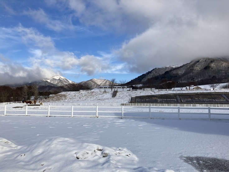 わたしが、日々トレーニングを行っている蒜山ホースパークは、まだ一面銀世界ですが、幸い室内練習場があり雪の季節でも充実したトレーニングを続けることができます。