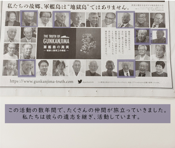 そこで、このたび私たちは、再び皆様からのご支援を賜り、これまでの調査に基づいた軍艦島の真実に関する映像作品を新たに制作し、これを広く一般に公開することを通じて、私たちの主張を改めて強く・深く・広く、国内外問わず、訴えたいと考えております。
