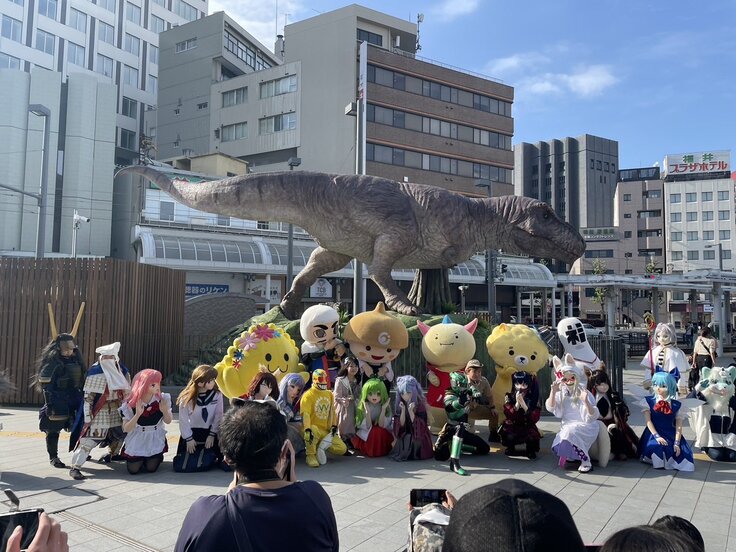 プロジェクトは、20名程度の着ぐるみさんと福井駅前を練り歩きました。