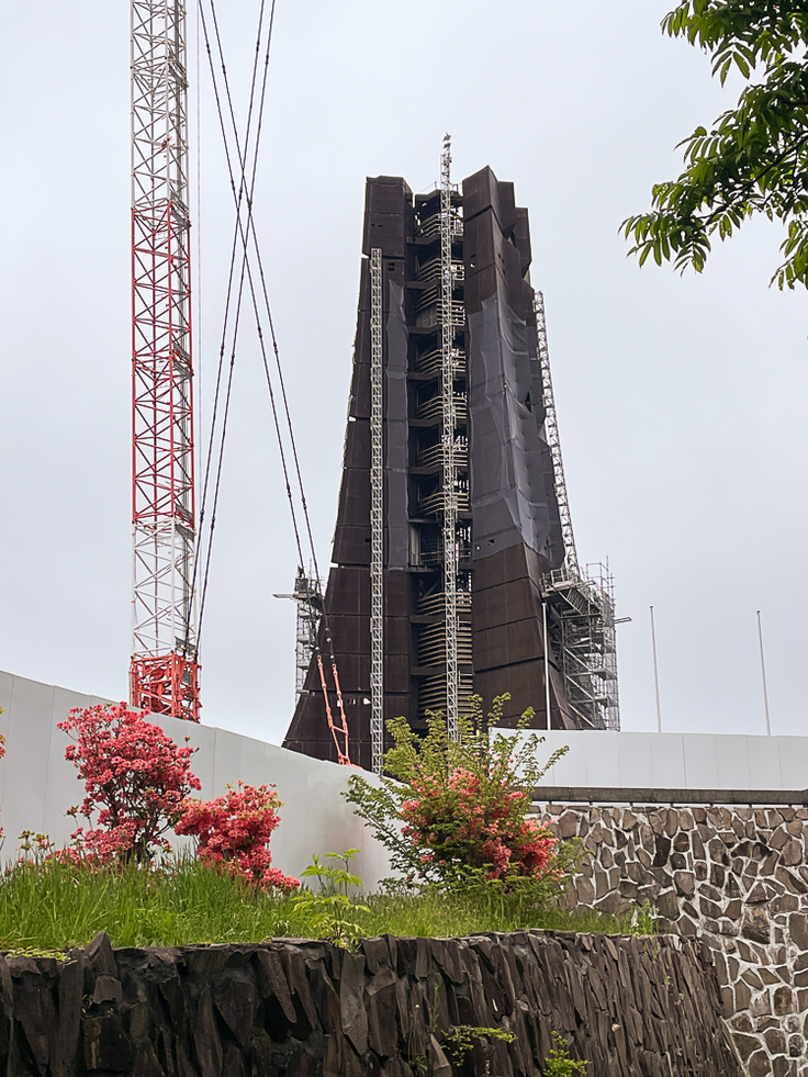 今日の札幌は午前中は雨でしたが、午後からは止んだものの曇天の肌寒い一日でした。記念塔の解体工事はこの一週間でかなり進んだ印象です。あの美しい双曲線は失われましたが、まだ塔は残っています。