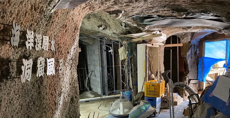 昨年12月より全面改装を行っていた洞窟風呂においても工事を再開することができました。