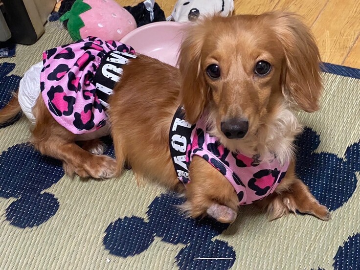 ブリーダーから保護された56匹の犬の中で『前足が1本無いM.ダックスが1頭・前足が2本無いM.ダックスが2頭・片目が無いM.ダックス1頭』が、愛護センターWan lifeで保護されている情報を偶然Facebookで見られ、私どもに情報提供を頂いたことが最初の動機となりました。