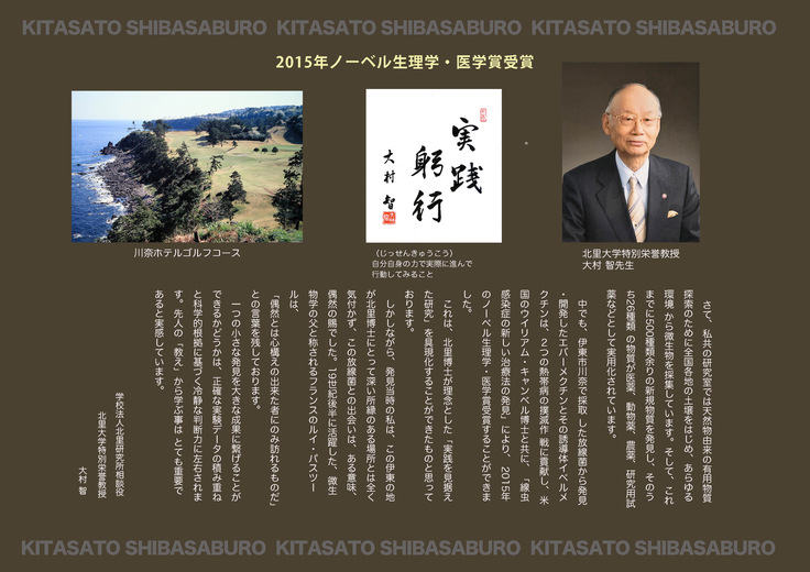 講演タイトルは「北里柴三郎先生の実学の思想と私の研究」である。