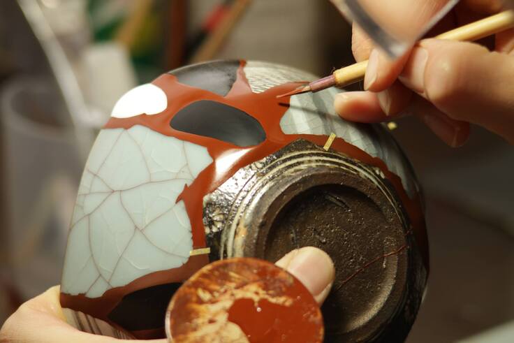 「輪島塗」の技術を持つ職人の力により、被災した陶器を「新しい美しさ」を持つ作品に再生することができました。