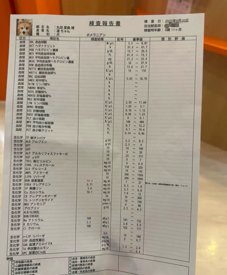 しかし左心房の大きさ、腎臓の数値は通常の約2.5倍血圧も通常が130くらいのところ100と薬の影響もありますが、なんとか薬を調整して病状の悪化を抑えてくれています。