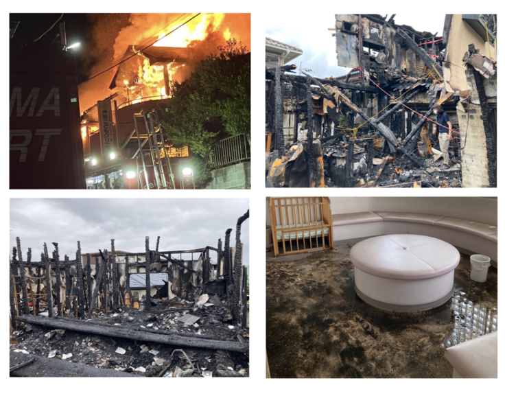 6月2日夜、クリニック併設の住居で原因不明の火災が発生し、住居部分は全焼、クリニックも地下室に池ができるほど水浸しになり、大損害を受けました。