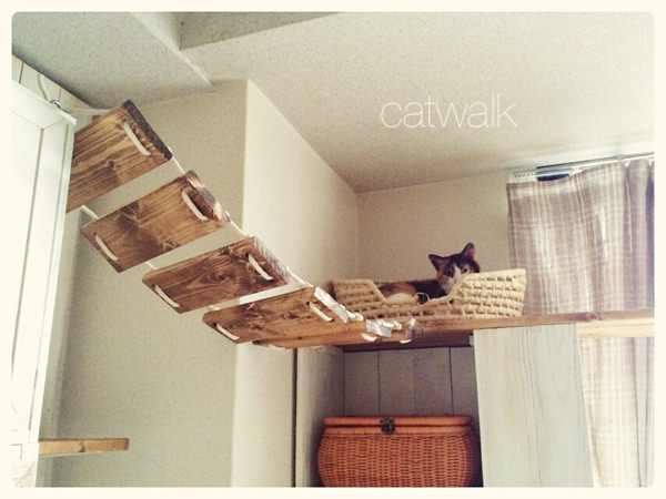 キャットウォークなどをふんだんに取り入れ、壁も天井も猫たち一匹一匹が、縄張りとして安らげる工夫を。(ネットで見つけました❗)