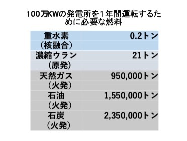 化石燃料の僅か10万分の一の原発のさらに100分の一という超省エネです。
