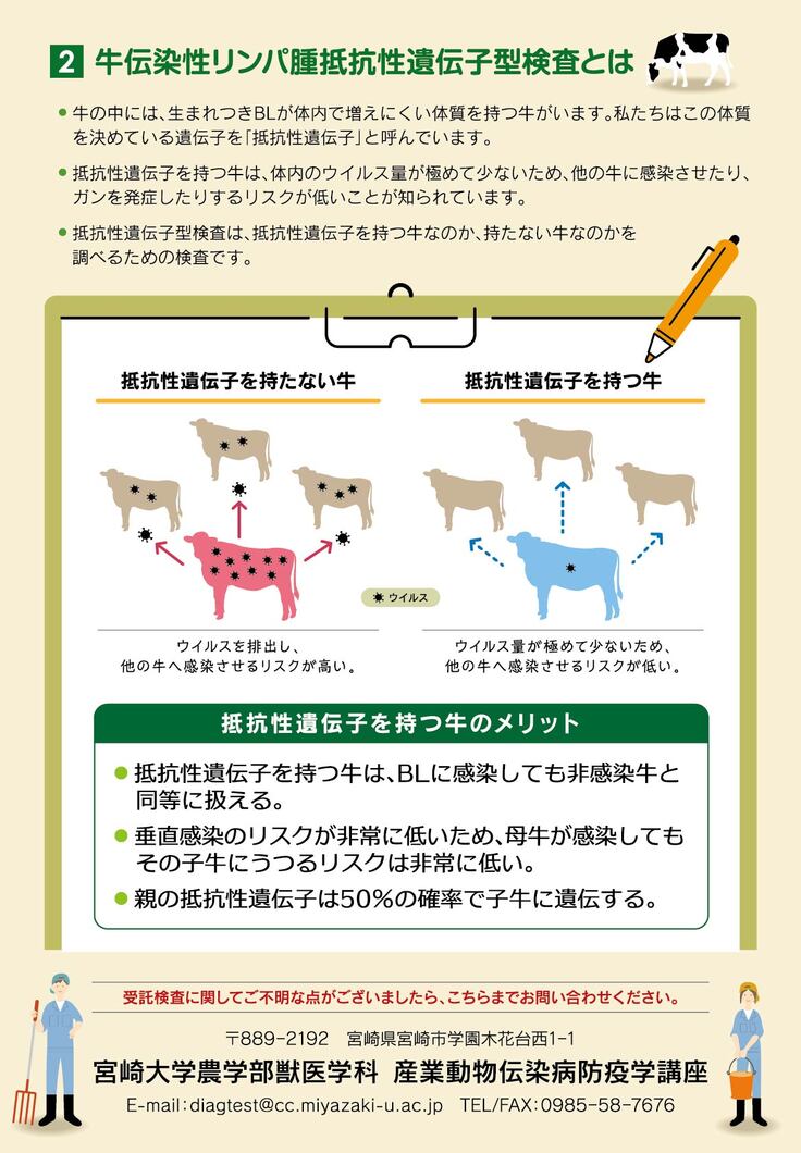 また、私たちはこれまでの研究で、ウイルスに感染しても牛の体内でウイルスが増えにくく、発症しにくい体質の遺伝子(抵抗性遺伝子)が存在していることを明らかにしています。抵抗性遺伝子を持つ牛は、感染しても他の牛にうつす心配もないので、安心して飼うことができます。しかし、体質遺伝子を調べるためには非常に高度で高価な検査技術が必要でした。そこで私たちは、その遺伝子を安価で簡便に調べる技術を開発し、実用化に成功しました。