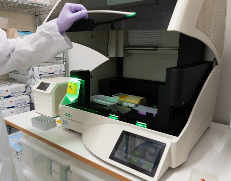 皆様からいただいたご支援により、検査サービスを全国へ展開するための体制が整いました。プロジェクト開始から1年と4カ月。本当にあっという間の時間でした。この間、私たちが最初に取り組んだことは、検査費用のコストダウンを実現するための新しい検査技術の開発でした。そこで目を付けたのが第3世代といわれるデジタルPCR技術です。デジタルPCRは極微量の試料(血液)でも、高精度にウイルスを検出できる最新の技術です。さらに、感染の有無だけでなく、感染量(ウイルス量)も計測することができます。これにより、ウイルスをたくさん放出している感染牛と、感染してるけどほとんど感染のリスクがない感染牛を見分けることができます。私たちはこの技術を確立し、国際科学雑誌で発表しました。