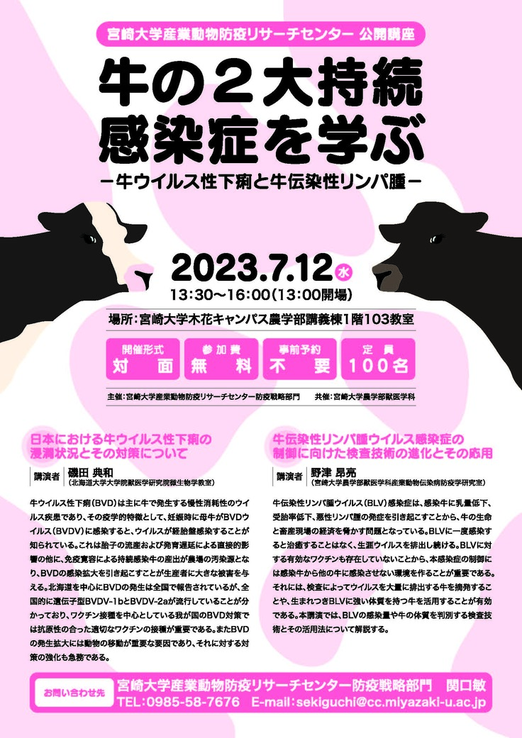 内容:牛の2大持続感染症を学ぶー牛ウイルス性下痢と牛伝染性リンパ腫-