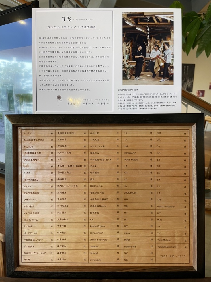 2022年11月〜12月の間に実施しました3%初のクラウドファンディングではたくさんの温かいご支援、誠に有難うございました。