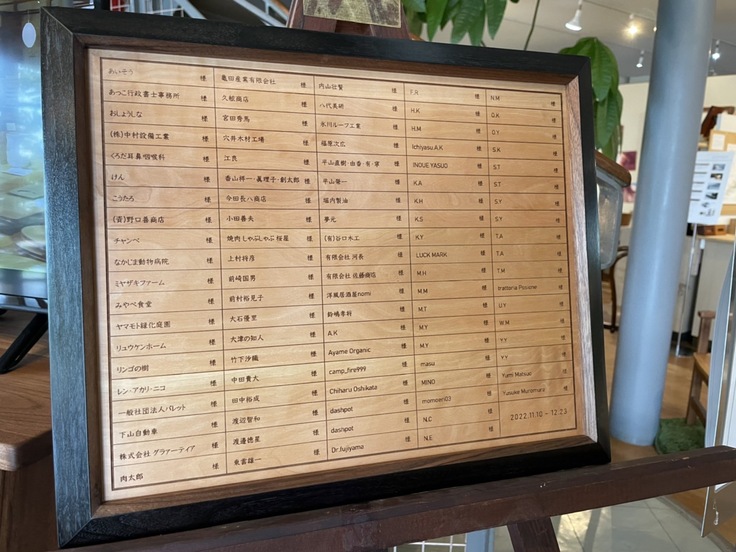 支援金リターンとして「支援者のご氏名をお入れした梨材のプレート」をお作りいたしました。