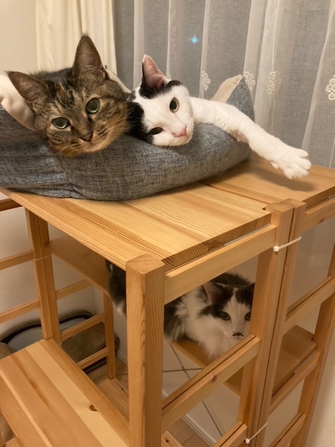 他の猫とも変わりなく接することができていますし、ご飯をもらう前のお決まりのルーティン(興奮してスリスリし過ぎて他の猫に怒られる)も復活…