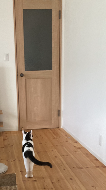 顔を洗いに洗面台に行くと、扉の前でソワソワしつつも、ジーーーッと待っています。