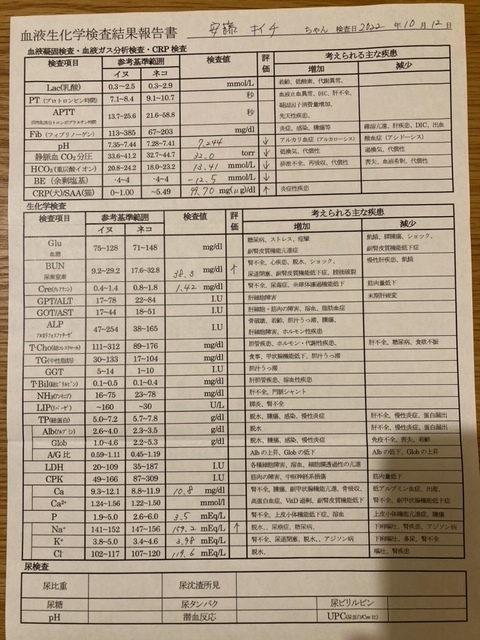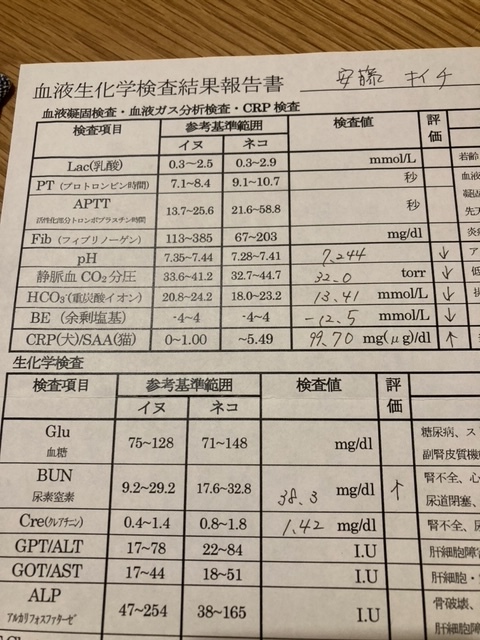 念のために血液検査をしたところ、BUNという数値とSAAという数値が悪い結果が出ました。