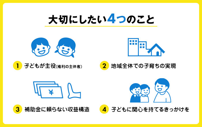 しかしこの中にたくさんの願いを込めて、また、少し大げさに言うと子どもの居場所づくりにちょっとした革命を起こせるんじゃないかと思っています。