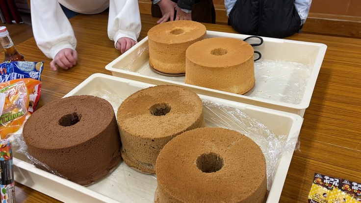 大きなシフォンケーキ5つ! 味はバニラ、ココア、アールグレイです!