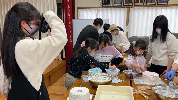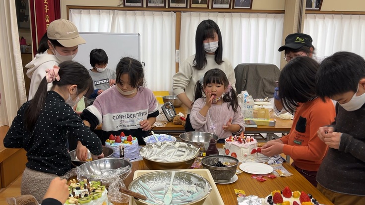 川口市並木にあるシフォンケーキFUUさんにお越しいただきFUUさんのシフォンケーキにFUUさんおすすめの具材をみんなで飾り付けてたべましたー!