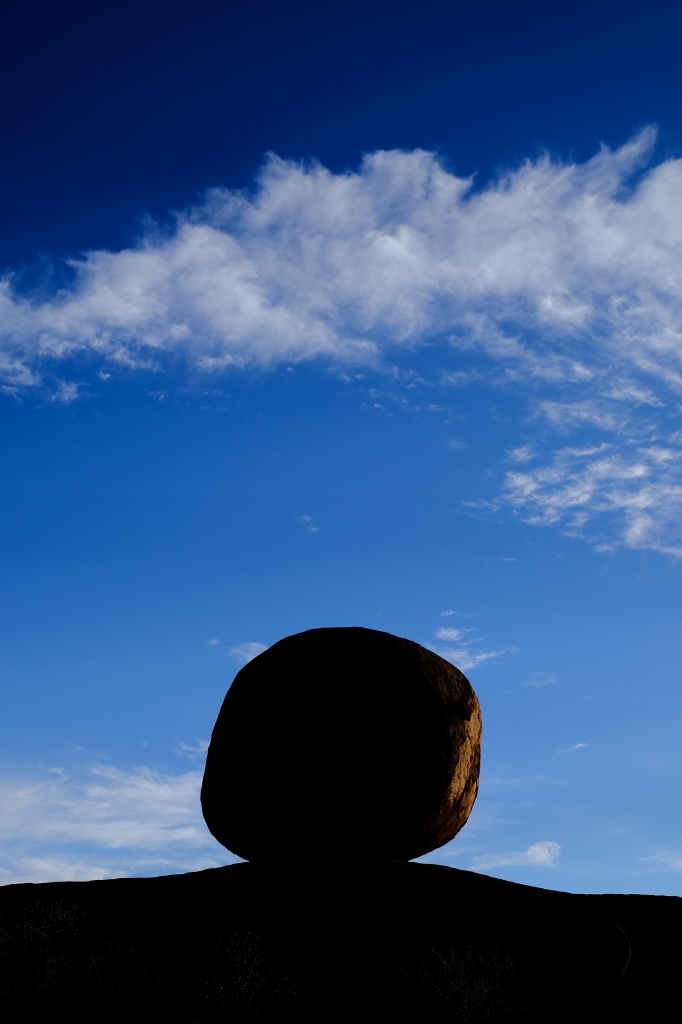 2枚目のデビルーズマーブルズは、この丸い奇岩を宇宙に漂う地球に見立てて撮影しています。ただ雲があるため、宇宙というよりも現実の綺麗な風景になってしまっています。そのために予選で落ちてしまいました。1作品としてはとても気に入って、雲と岩のバランスが好きです。ただ今回の写真展にはマッチしていませんでした