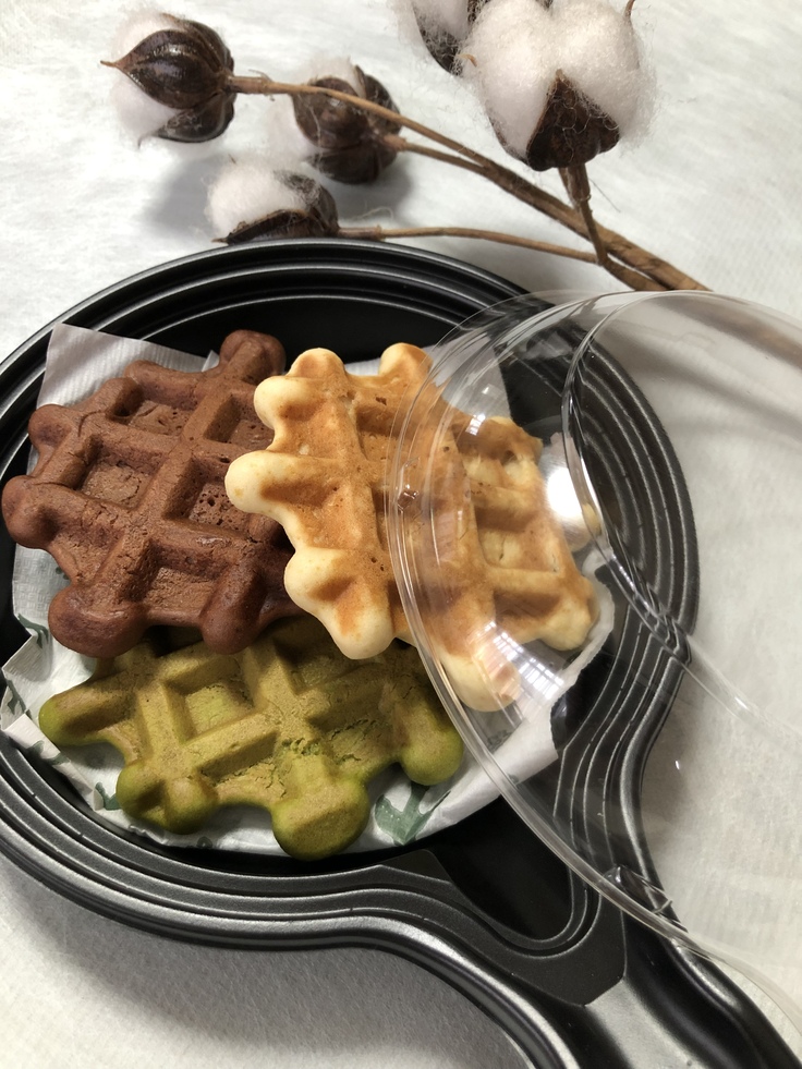 前記の通り、ワッフルは通常卵・牛乳・小麦粉を使うものなので今回の販売にあたり粉の種類や配分など何度も何度も試作を重ね、失敗を繰り返し、改善してやっと自分が思う完成に辿り着くことができました。