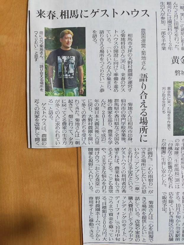 9月27日、福島民友さんの記事で今回のクラウドファンディングの事業について取り上げてくださいました!