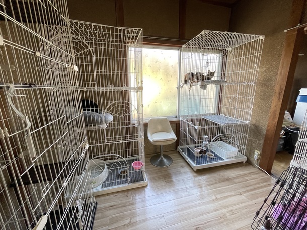 写真は引っ越し中のもので、まだ荷物の整理が完了していませんのでお見苦しいところもあるかもしれませんが、猫たちにストレスを与えないよう、徐々に施設内の環境も整備していきます。