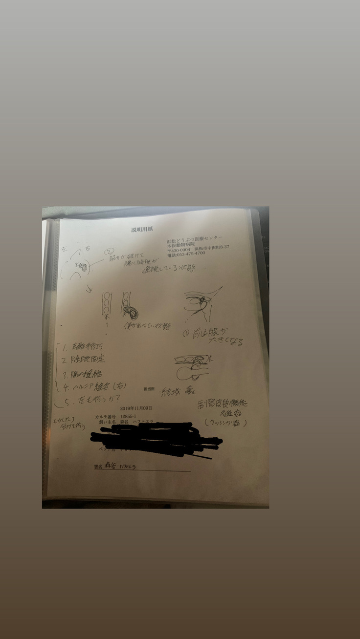 2019年11月には1回目の手術(右側)をして一安心ついたと思っていたら通院診察の時にもう片側(左側)のお尻の方も会陰ヘルニアになっているのと手術した方のヘルニアが再び戻ったと診察されました。