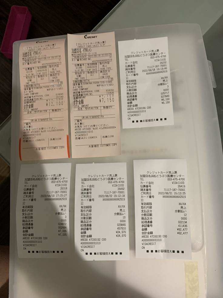 08/18:夜間救急動物病院で排尿処置 ¥7.150 (税込)