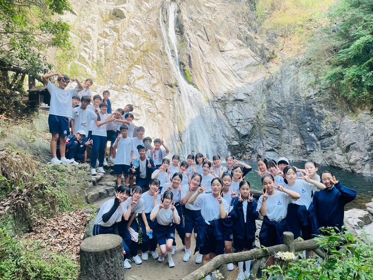 <日本の滝百選>にも選ばれた布引の滝まで歩いた後、滝の下流にてバーベキューを楽しみました。