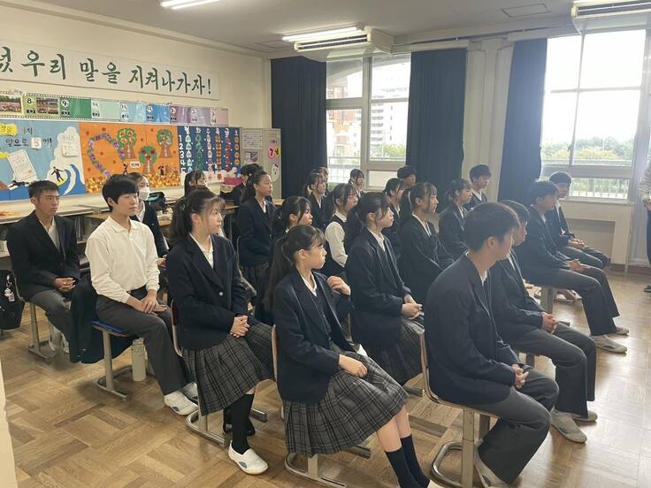 2,3年生は<人権と多様性>と言うテーマで弁護士であられる任 真赫先生から講義を受けました。色々な観点から特に法の観点から、人権と多様性について熱くお話してくださいました。生徒たちは講義を通していじめや差別を始めとする社会問題、そして平等とは何かを深く考える機会となりました。