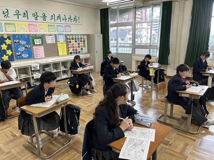 1年生は<人権を尊重しよう>と言うテーマで税理士であられる裵 炳秀ソンセンニムの分かりやすく丁寧なお話を聞き、グループ別に分かれグループワークを行い、日常生活のどのような場面で人権が尊重されているのか、いないのかを考える機会となりました。