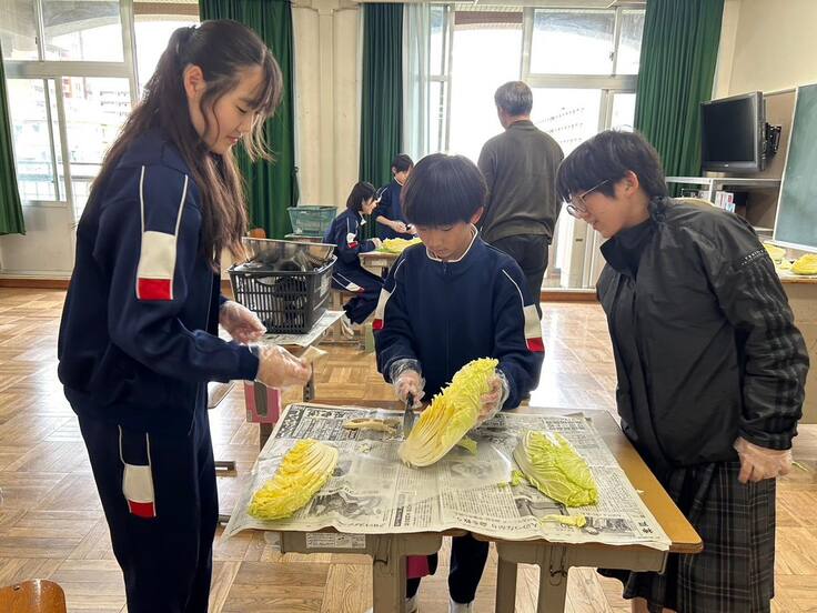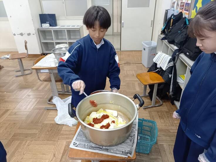 本日3/5(水)の5、6限目に、中1家庭科の調理実習としてキムチ作りを行いました。