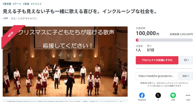 そこで、このクリスマスコンサートを開催するために、昨日、11月1日(金)正午から、READYFORのサイトにて、クラウドファンディング「見える子も見えない子も一緒に歌える喜びを。インクルーシブな社会を。」を開始いたしました!