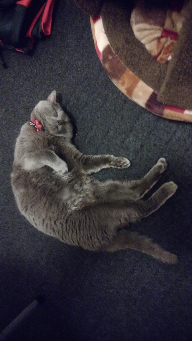 ※現在の姿。後ろ足あたりがかなりやせ細っています。現在は2.3kgとかなり痩せてしまいました。とにかく食べてほしいです。食べることは生きることですよね。。。(*_*)